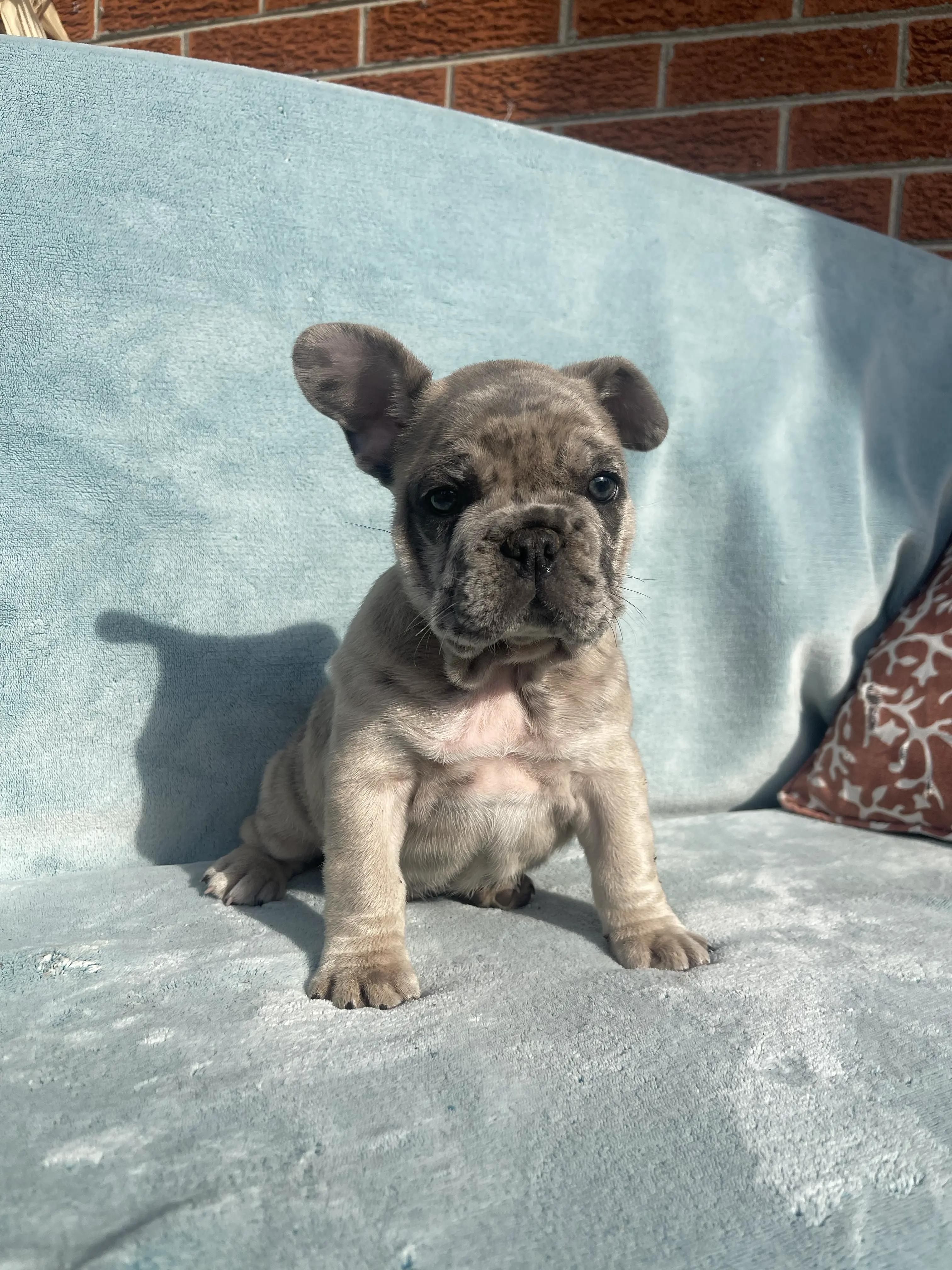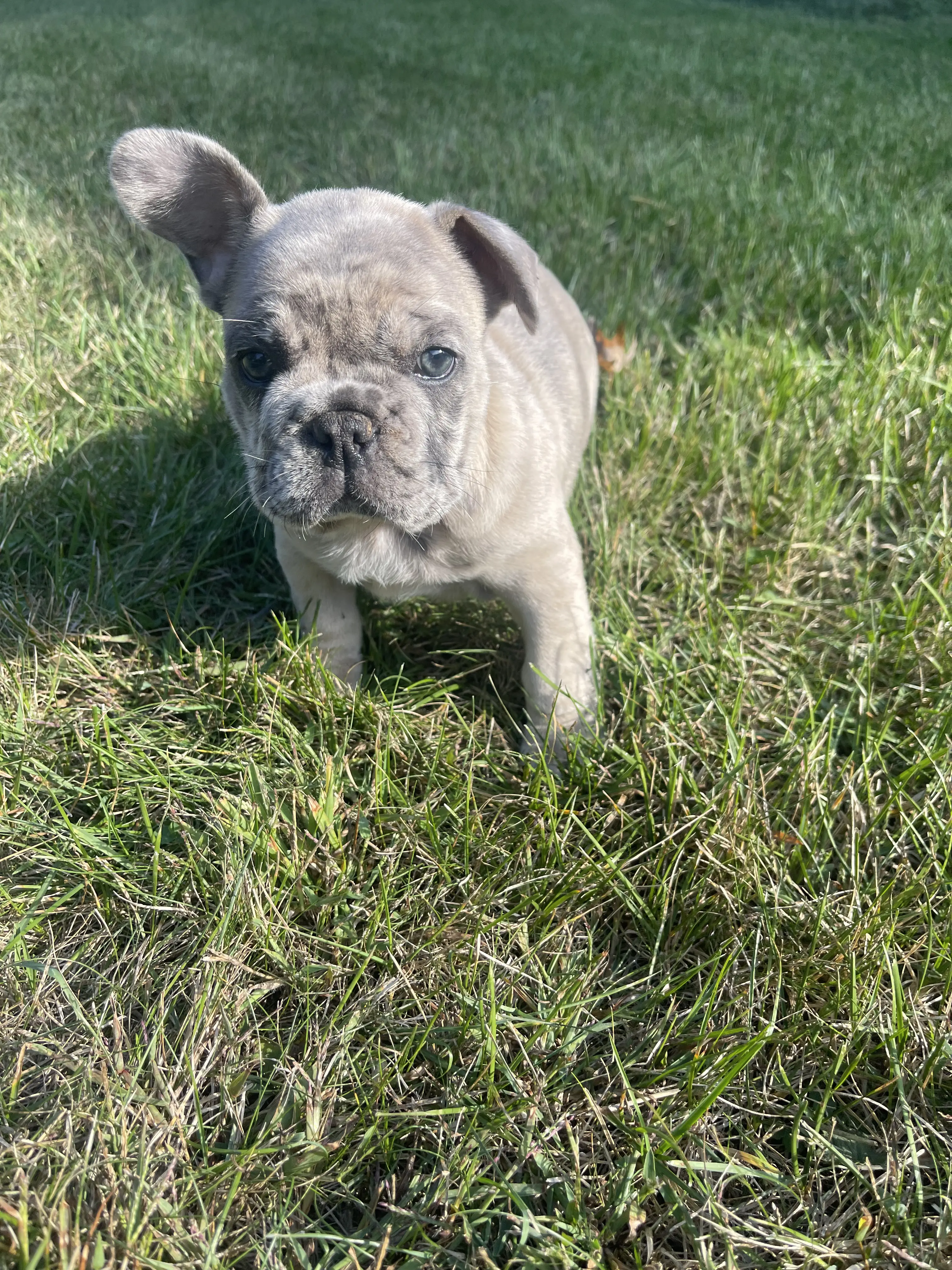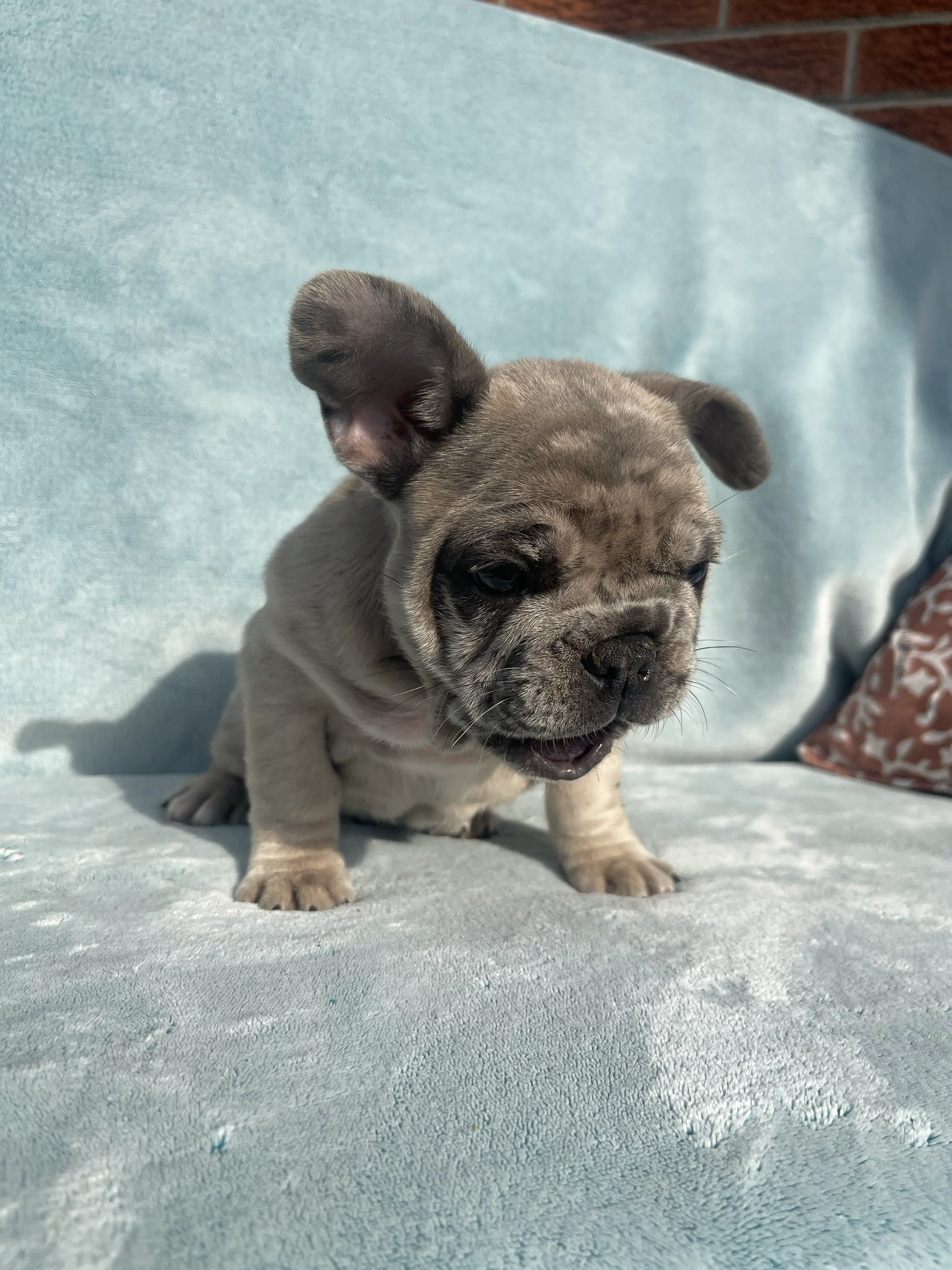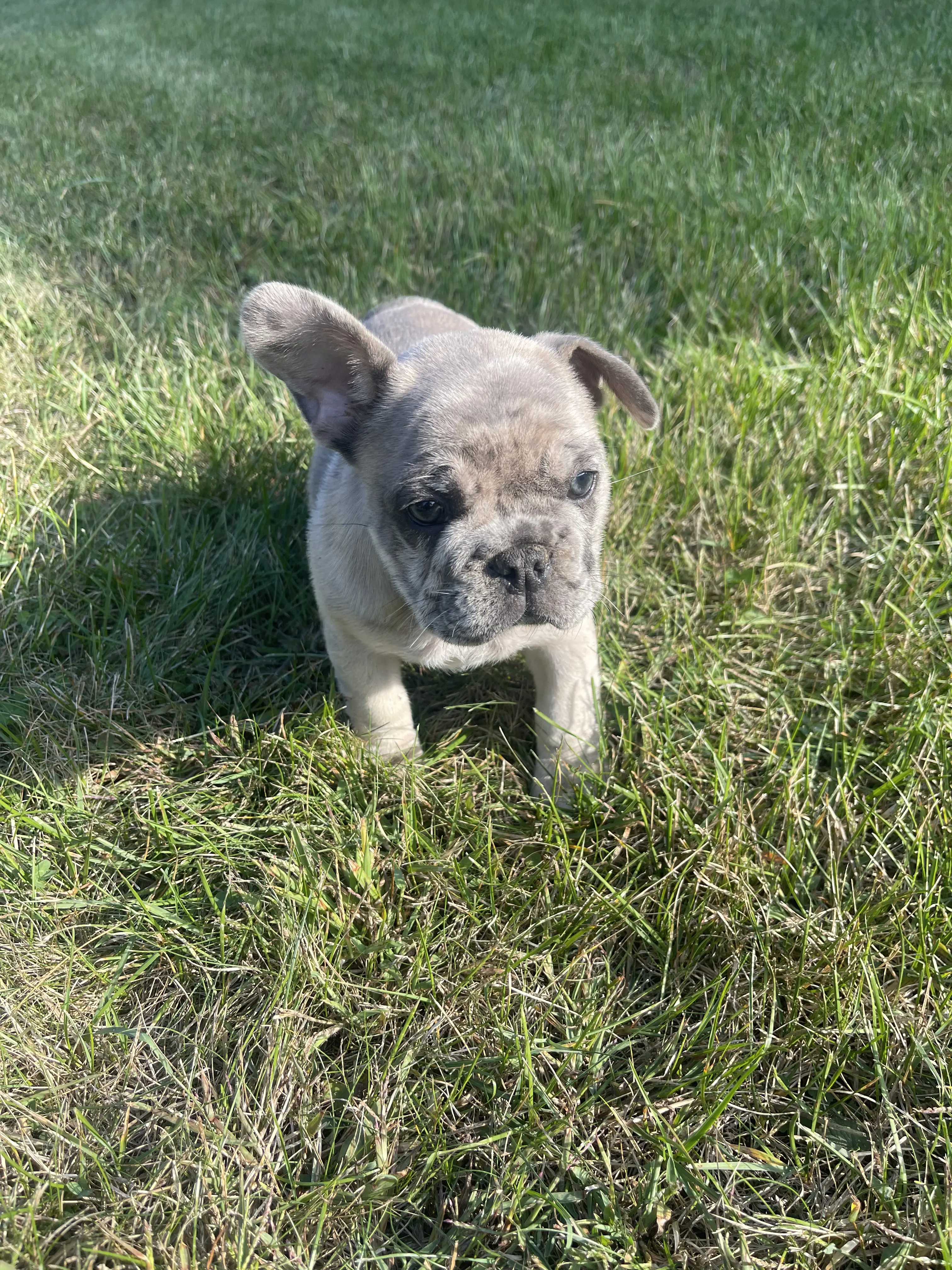 Winnie is pure sunshine wrapped in a chunky Blue Fawn Merle package. He’s the first to waddle over with that signature Frenchie grin, tail wagging at full speed, ready to make your day brighter. There’s nothing subtle about Winnie’s love—he’s all about belly rubs, snuggle sessions, and the occasional enthusiastic nose boop. Like his namesake, Winnie the Pooh, this little guy has a heart as big as his appetite and a sweet, easygoing nature that makes everyone fall in love instantly.